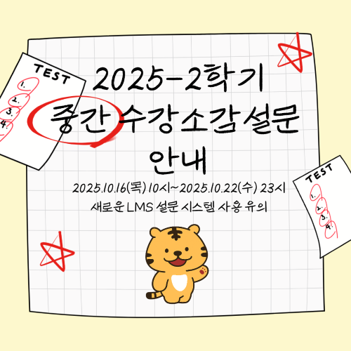 1. 해당 학기 수업 운영 개선 목적으로 2021학년도 1학기부터 개강 후 학기의 1/2 이전 중간 강의평가(수강소감설문)을 실시합니다.